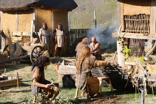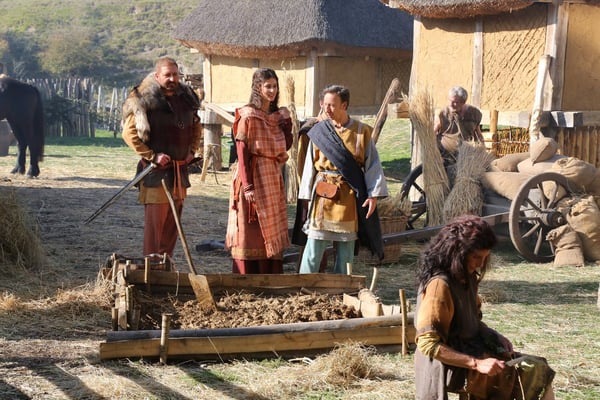 Il nous téléportent d'abord en -60, dans un village gaulois reconstitué sur le site de Samara, dans la Somme. Là Ludovic Moignet, spécialiste de la période, tente de réhabiliter l'art de vivre de nos ancêtres, inventeurs du matelas et maniaques au point de briquer leurs parquets en chêne à l'huile de lin. La rigueur historique l'oblige toutefois à ajouter qu'ils mangeaient leurs chiens et pratiquaient la décollation, soit la décapitation post mortem le leurs ennemis.