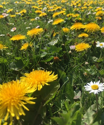 Le printemps est là, j'ai des pissenlits en pagaille dans le jardin. C'est vrai qu'il ressemble plus à une prairie qu'à un gazon anglais ! Mais si on veut préserver la biodiversité ce n'est pas grave d'avoir des pissenlits, des violettes ou des pâquerettes dans la pelouse ! En plus ça se mange alors pas de problème !